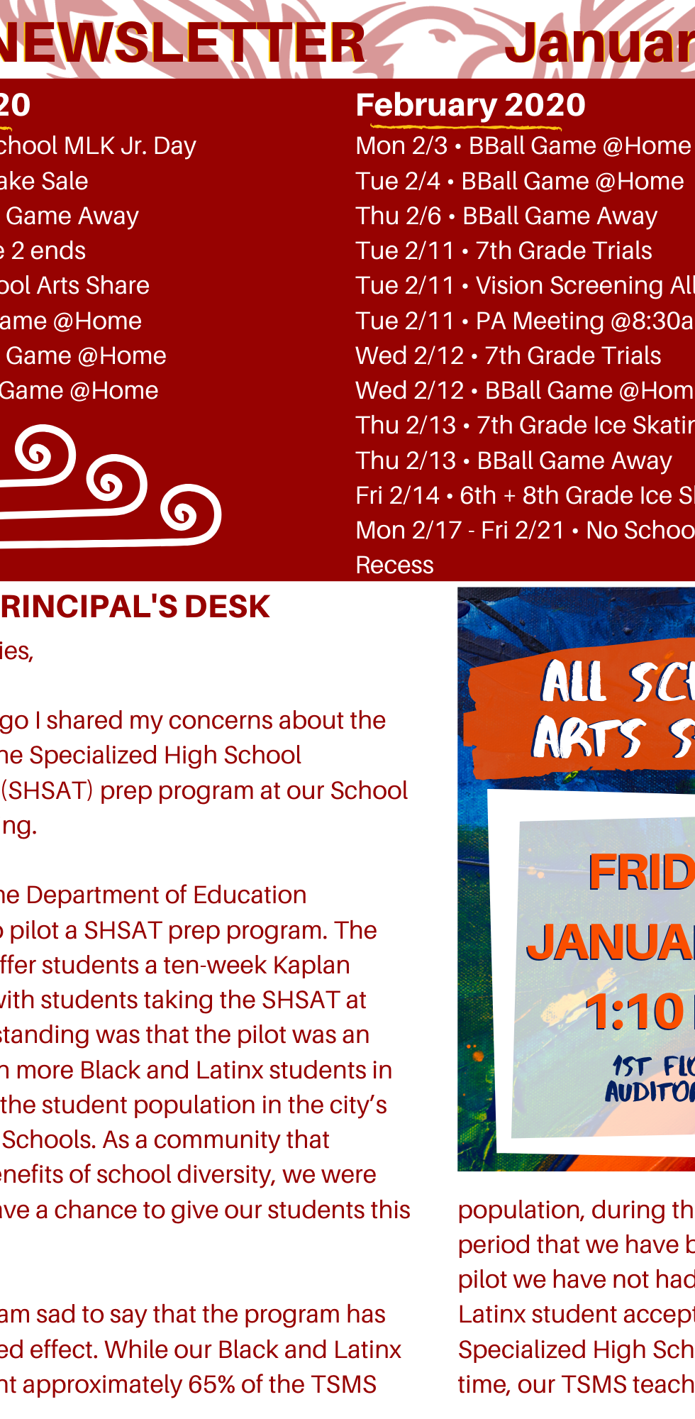 Tompkins Square Middle School • Community School District 1 MS 839 • 600 East 6th Street, 3rd floor Office Room 318 • 212-995-1430 • Fax 212-979-1341